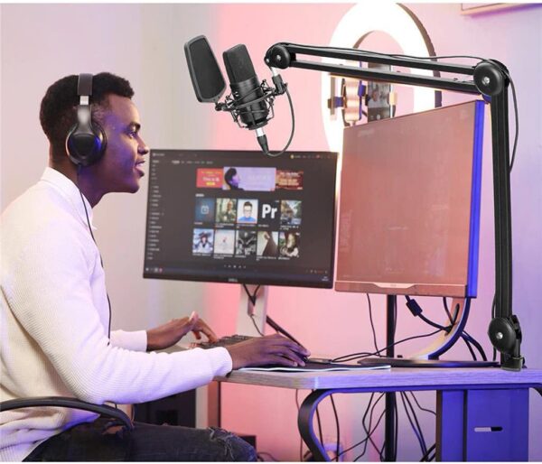 ال BOYA BY-BA20 Spring Loaded Suspension Arm is a professional-grade microphone boom arm designed to provide optimal positioning and stability for microphones. Ideal for podcasting, streaming, voiceovers, and recording, it offers a robust and versatile solution for users seeking enhanced audio setups.