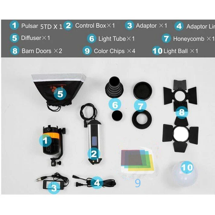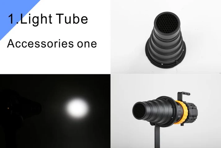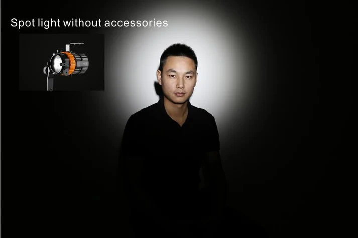 The front adaptor is able to adapt to PA-K6 accessories like snoot, honeycomb, color gel, softbox, etc to create different effects