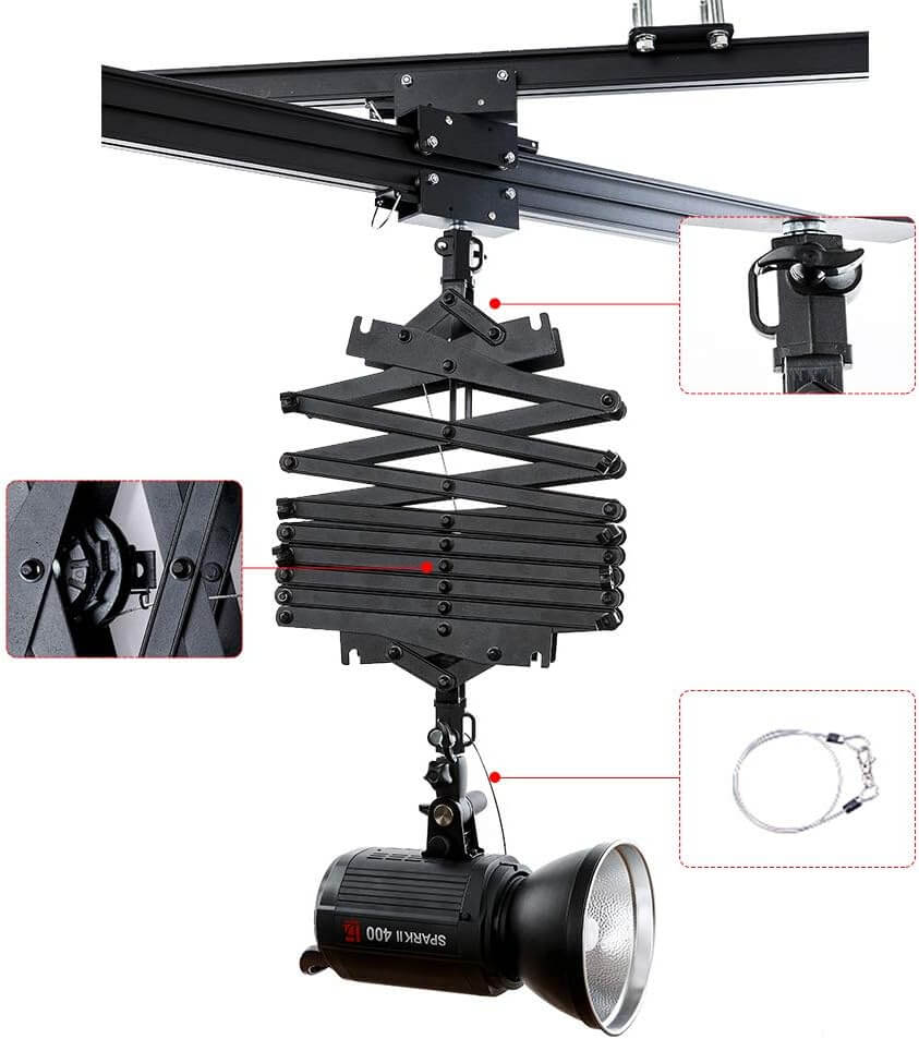 This extra extendable pantograph is ideal for use with heavy lighting and editing sets, capable of holding up to 10kg. Whether you are a professional photographer or a casual videographer, this pantograph studio ceiling rod system is great for achieving those dynamic and creative shots.