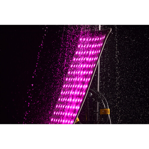 Color and flexibility combine with the KNOWLED F100R RGB Flexible LED Light Mat من جودكس. Expanding the brand’s F series of foldable LEDs, the F100R will add a variety of colors to your video or photo productions. Not only is this 1 x 2′ LED mat physically flexible, but it has also been designed for flexible RGB color control. This 130W LED light has a wider CCT range that is adjustable from 1800 to 10,000K compared to the bi-color F series. The light also brings more creative options than its previous version, with 14 effects for easy lighting simulations. It offers ample power and control methods as well. The F100R is a lightweight and portable solution that can literally be bent or folded to suit different environments. The light comes with the controller, a connector cable, a power cable, a metal bracket and adapter holder for mounting, a standard softbox for diffusion, and a bag for storage.