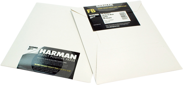 HARMAN DIRECT POSITIVE FB paper is primarily suited for use in pinhole cameras where exposure and processing in conventional black and white photo chemistry achieves a unique positive print – without the need for a film negative or inter-negative.
