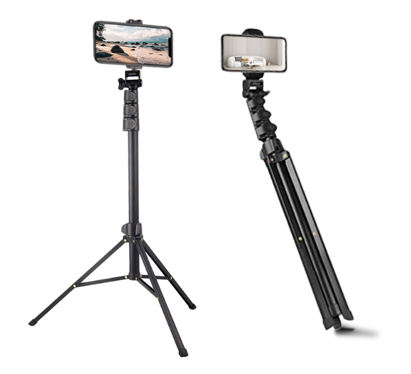 Adjustable Phone Holder: Secure clip for smartphones, ideal for photos and videos from multiple angles.