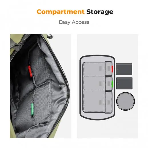 The 10L Alpha Camera Sling Bag من K&F Concept accomodates your camera and two lenses. Wear it over your shoulder, around your waist, or cross-body style. Made from padded, waterproof fabric that is scratch and wear resistant, your gear will be protected from bumps and moisture. The interior has flexible dividers to keep your gear and accessories organized. The partitions can be removed if you need more interior space. The zipper pull rings can be interlocked for added safety.