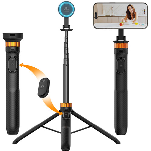 Snap selfies and record videos while on-the-go or stationary with the intuitive MS19 Magnetic Selfie Stick Tripod من K&F Concept. While able to extend up to 63.8″ as a selfie stick, it also operates as a tripod with a working height range from 16.5 to 62.6″, allowing for seven different levels of adjustment. The magnetic bracket provides stability and avails compatibility with various smartphones that are fitted with MagSafe rings. It weighs less than a pound and collapses down to 11.8″, making it plenty portable and able to fit in most bags. 360° of rotation is available with the ability to tilt forward and backward, giving users ample control over the angle of the magnetic head. A detachable Bluetooth remote allows for easy capturing with one click whether on the base of the tripod or in your hand at a distance up to 32.8′ away.