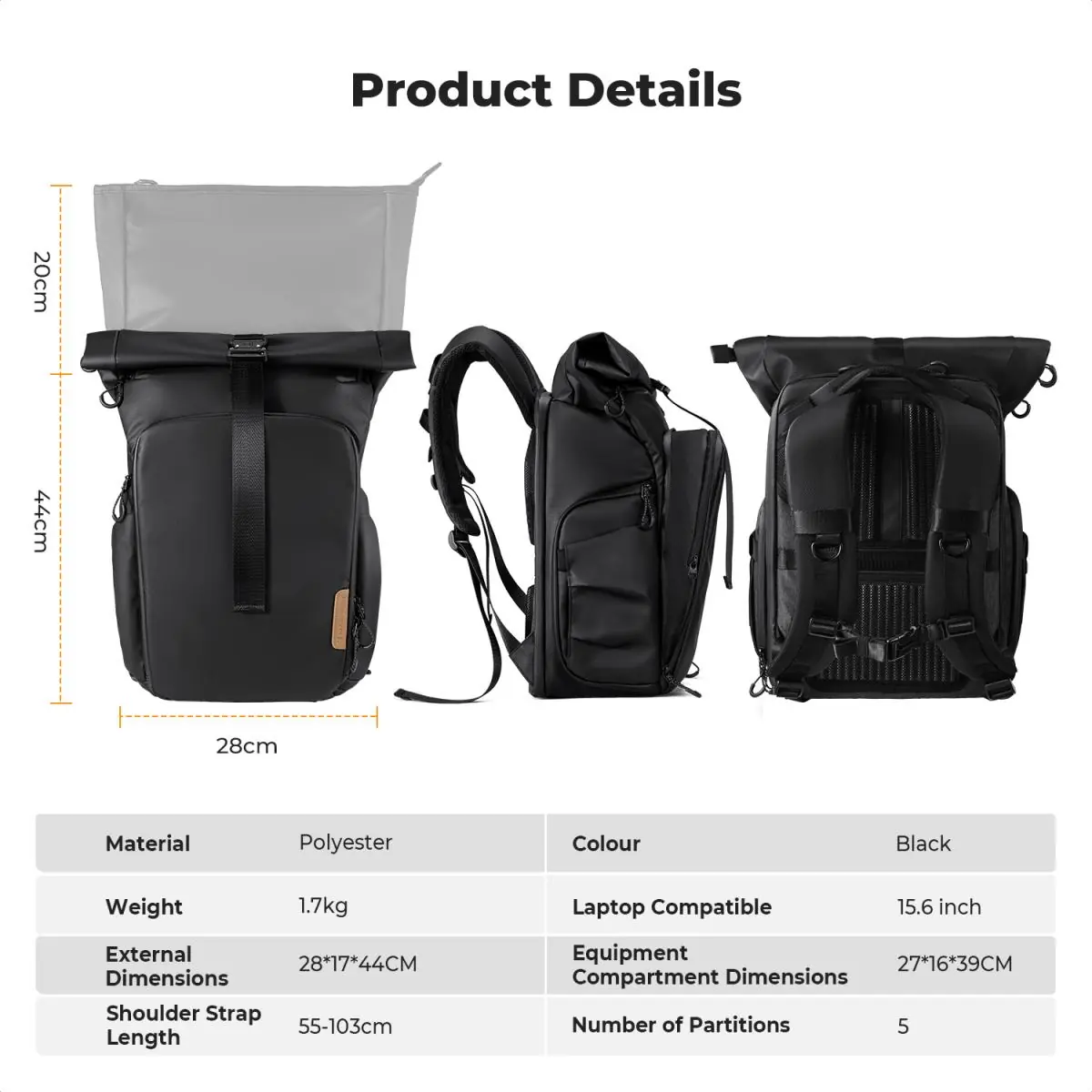 With multi-pocket organization—including dual side pockets, internal mesh compartments, battery slots, and a memory card holder—your essentials stay neatly arranged and easy to reach. The expandable 4L top pocket and 2L front compartment offer extra room for personal items or additional photography gear, making the backpack ideal for both shooting days and daily travel.