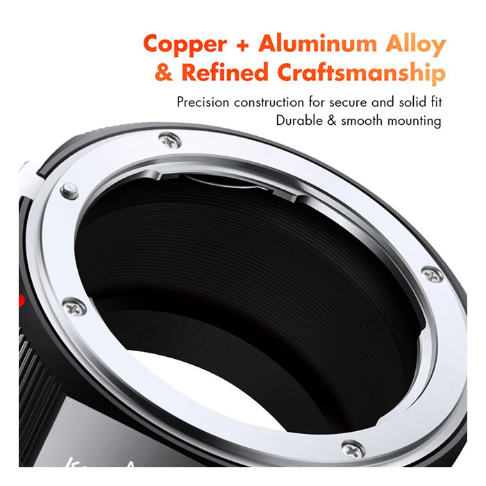 تصميم وإنتاج K&F Concept مجموعة كاملة من محولات العدسات لتناسب عدسات Canon، Nikon، Pentax، Olympus، Leica، Contax Yashica، Minolta، Tamron، T2، C mount، Exakta، M39، M42، Pentacon، وغيرها، المستخدمة في أجسام كاميرات Canon، Nikon، Sony، Fujifilm، Pentax، Micro 4/3، Leica، M42، Cinema C، وأنظمة أخرى. رقم الموديل KF06.436.