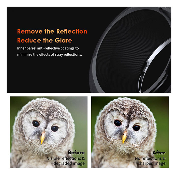 - نقل مثالي عالي الدقة، هيكل حلقة من سبائك الألومنيوم والمغنيسيوم، حربة نحاسية دقيقة لن ترتدي العدسات، الصنعة رائعة للغاية، مزيج محكم وسلس مع الحربة، قابل للتعديل وقابل للتركيز، يمكن تشغيل وظيفة ماكرو للعدسة، ويمكن يكون التركيز لانهائي.