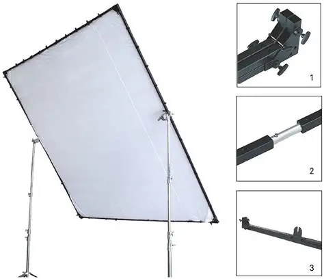 The 12 x 12′ Butterfly Frame Kit من Kupo contains everything you need to construct a frame for nets or silks that can be used overhead to lower the contrast of bright light sources or match the ambient light intensity. The kit includes heavy-duty 1.18″ aluminum tubes, ear-type frame supporters, corners, nuts, and bolts.