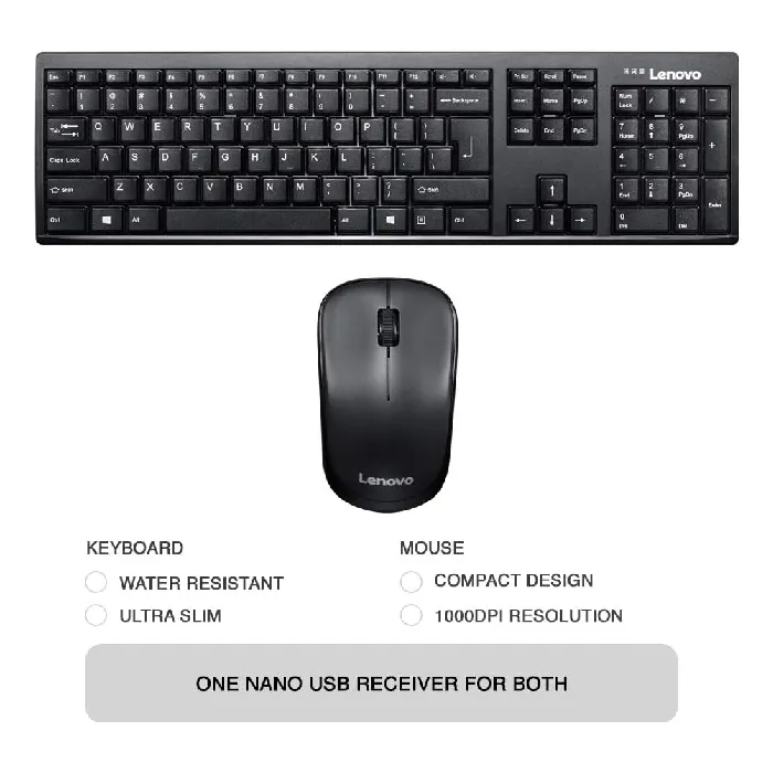 - Lenovo 100 Wireless Combo Keyboard & Mouse – Arabic – Black