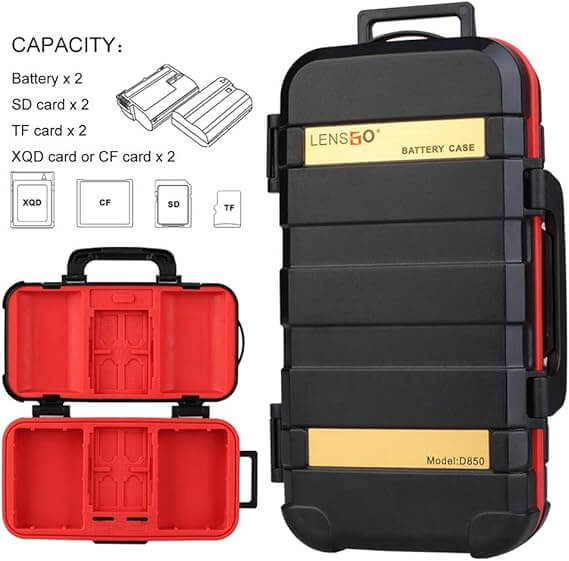 - LENSGO D850 Battery Storage Box for Camera and Memory Cards