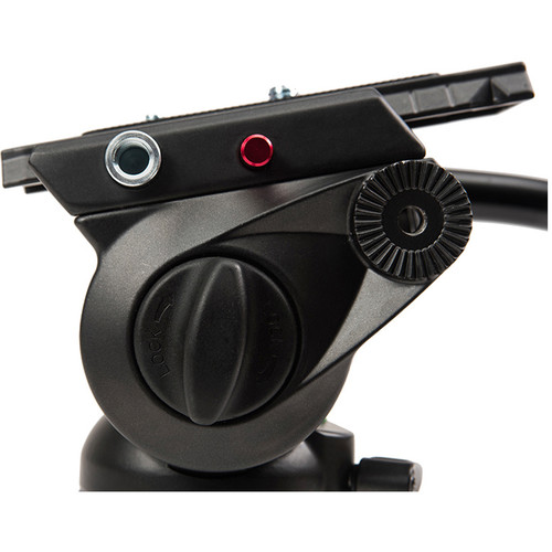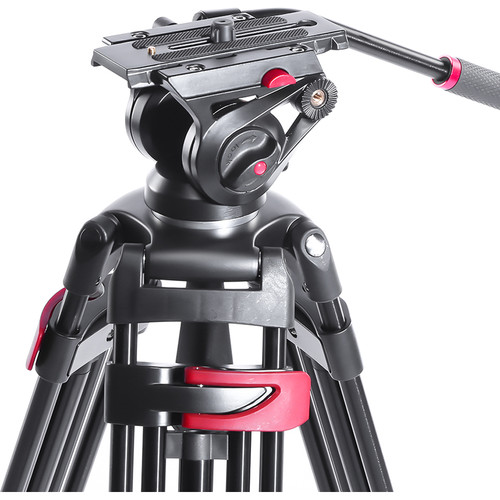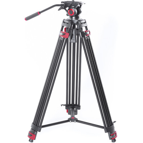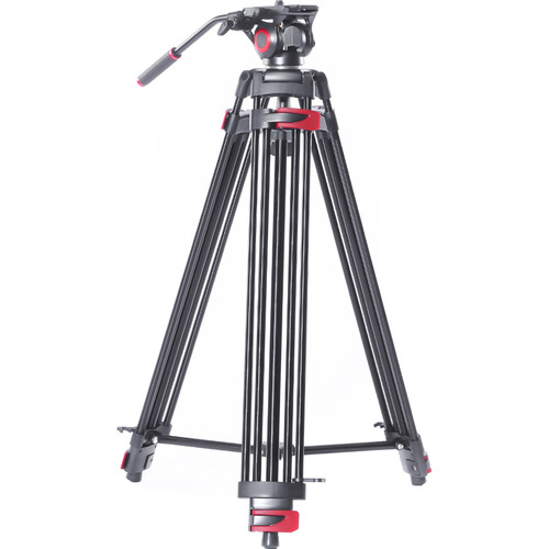 The tripod has a 29.9″ minimum height, it extends to a maximum height of 76″, and it folds down to 28.4″ in length for transport. The fluid head features a 360° pan rotation and a -70 to 90° tilt range, and it includes a pan bar and bubble level to make balance and movement smooth and easy. The full tripod and fluid head kit weighs 9.3 lb and has a maximum load capacity of 17.6 lb.