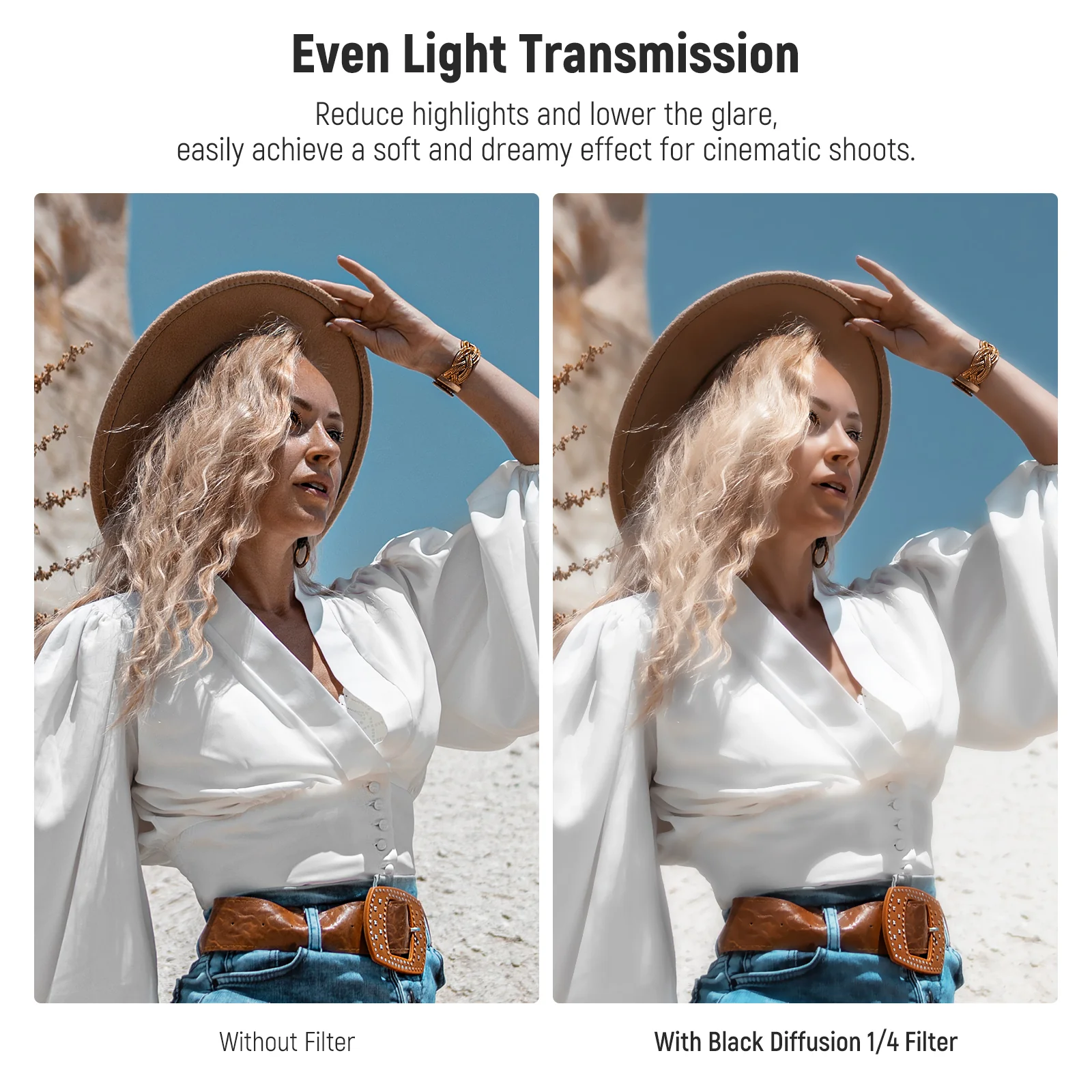 - Even Light Transmission– Helps you easily achieve a soft and dreamy effect for cinematic shoots