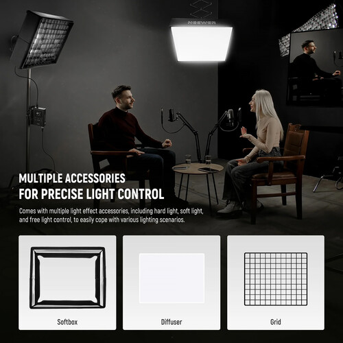 ال FL100C RGB Flexible LED Light Mat من نيوير is a 20.9 x 17.3″ foldable light source, offering higher brightness of up to 4140 lux at 3.3′. It provides full RGBCW color with a 360° color wheel and control over a wide CCT range of 2500-10,000K in 100K steps. Navigate between various operating modes, such as CCT, HSI, RGBCW, GEL, FX, SOURCE MATCHING, and XY to find quick selection options. The FL100C is packed with a softbox, grid, and carry bag for a complete, highly portable lighting setup to creatively illuminate your video or photo production. Its bendable design allows for various shapes to best fit into ceilings, car roofs, walls, and other narrow spaces.
