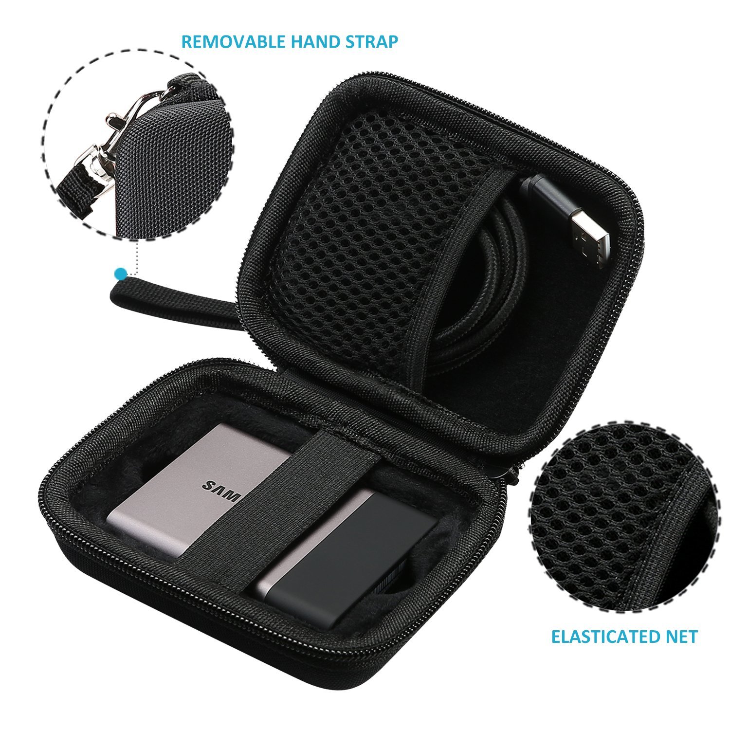 ProCase Samsung T3 T5 Hard EVA Carrying Case is specially designed for Samsung T5 / T3 / T1 Portable External Solid-State Drives. It provides great protection for the hard drive in the main compartment and keeps USB cord ready in its mesh pocket. It also features quality smooth zipper closure for easy opening and closing, plus detachable hand strap for portability. This functional protective case is ideal for anyone who has data that is critical to their daily work, making it a must have for digital life.