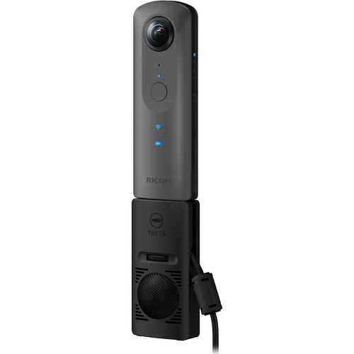 The Ricoh THETA V 360 camera features a built-in 4-channel microphone that provides high-quality audio with seamless transitions between the channels. The dedicated Ricoh TA-1 3D Microphone for the THETA V further enhances the audio quality by enabling 360° 3D spatial audio capture with a wide frequency range.
