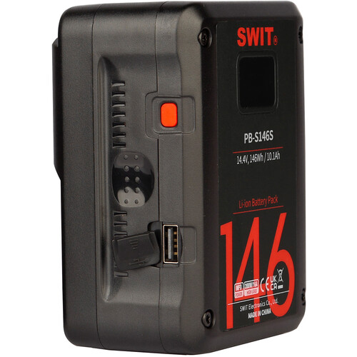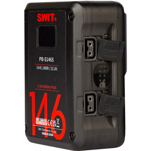 Power your cine camera with V-mount plate using this V-mount PB-S146S 146Wh Lithium-Ion Battery Pack with OLED Display من سويت. The PB-S146S features a 146Wh 14.4V capacity and a 200W/16A constant high load that can keep your camera rolling for five hours. Integrated into the front of the battery is an OLED display showing power status, battery cycle, or any detected issues like overcharge or short circuit.