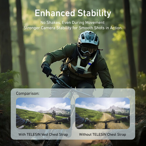 Go hands-free and capture motion and action scenes from a chest-level perspective with your GoPro, DJI, Insta360, or other small action camera mounted on this dedicated Vest Chest Strap with Quick Release من تليسين. Use this updated chest strap to steady your camera when skiing, boating, biking, surfing, cycling, or on a motorcycle.