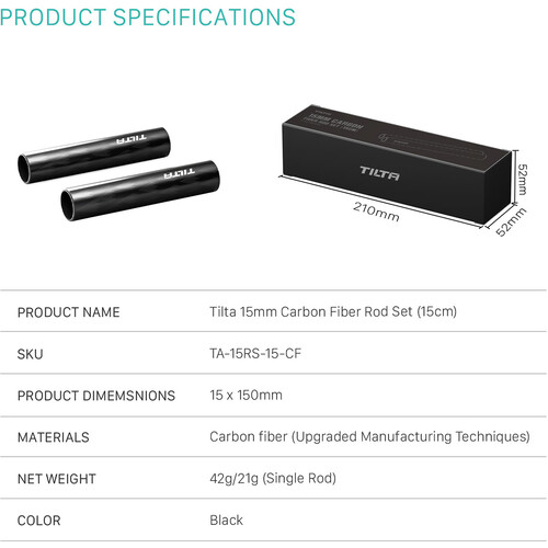 • Tilta 15mm Carbon Fiber Rod Set (5.9″, Pair)