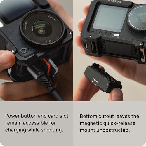 • Provides a side connector and allows access to the bottom connector for Tilta’s quick release baseplate