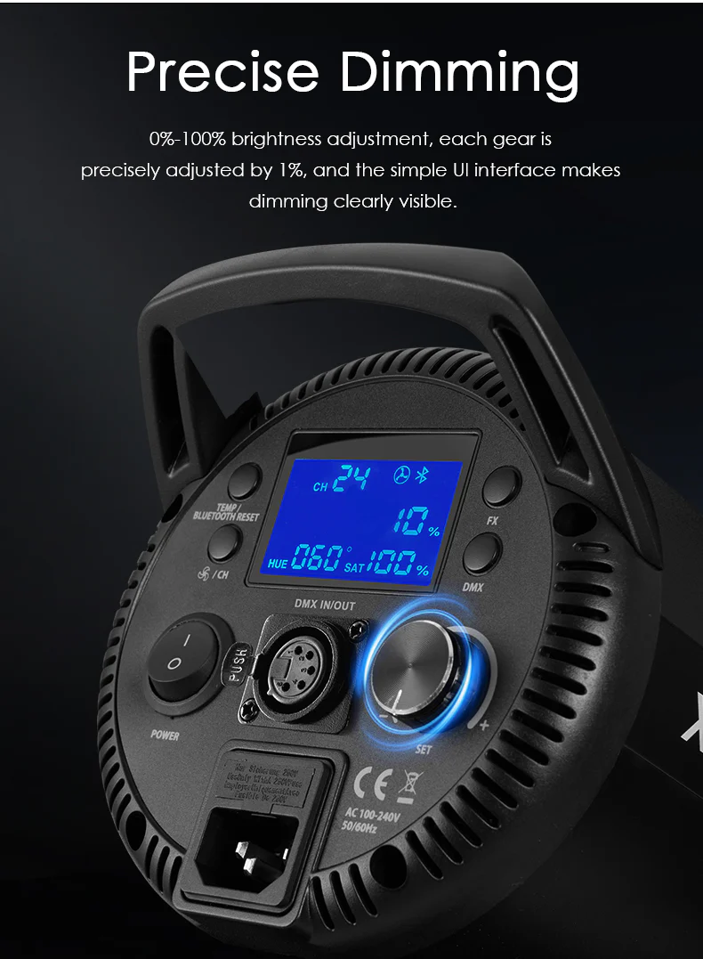 - Smooth 0–100% brightness dimming