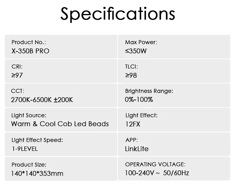 - 350W high-power COB LED output