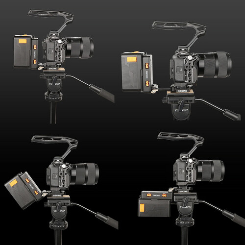 Power your DSLR or mirrorless camera with a V-mount battery using the VM-VP4 Quick Release Battery Plate من ZGCINE. Attaching to your camera via an Arca-type quick release plate, the VM-VP4 can power your camera and accessories with its single USB-C PD port or three 14.8V D-Tap power outputs.