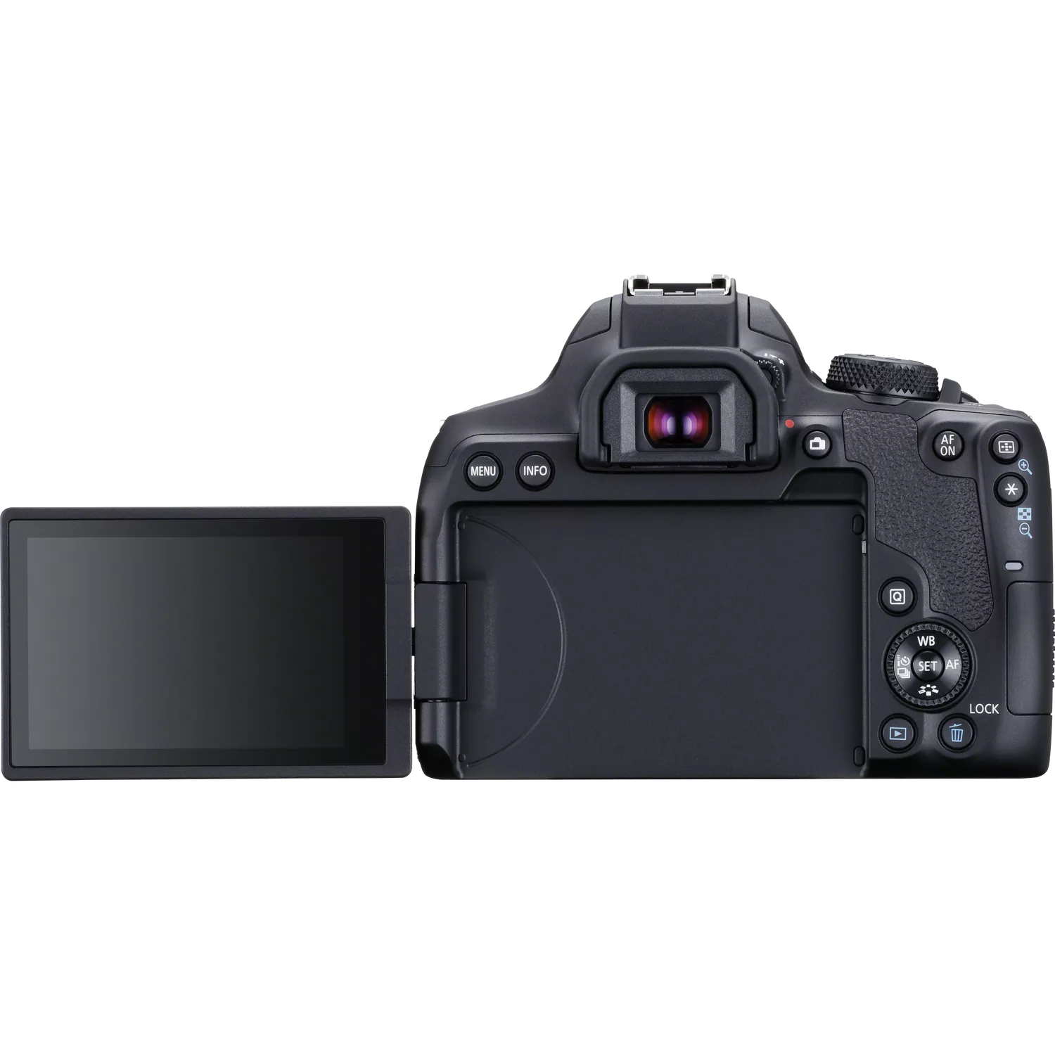 The Canon EOS 850D is a versatile DSLR with well-rounded photo and video capabilities. Featuring a 24.1MP APS-C-format CMOS sensor and DIGIC 8 image processor, high-resolution stills and UHD 4K video recording are supported, along with a wide ISO 100-25600 sensitivity range to suit working in a variety of lighting conditions. Benefitting the imaging attributes, the sensor’s design also facilitates Dual Pixel CMOS AF, which uses phase-detection autofocus for quick, accurate, and smooth focusing performance when recording movies or shooting stills in live view. When shooting stills using the optical viewfinder, a 45-point all cross-type phase-detection system is used for quick and accurate focusing in a variety of shooting scenarios.