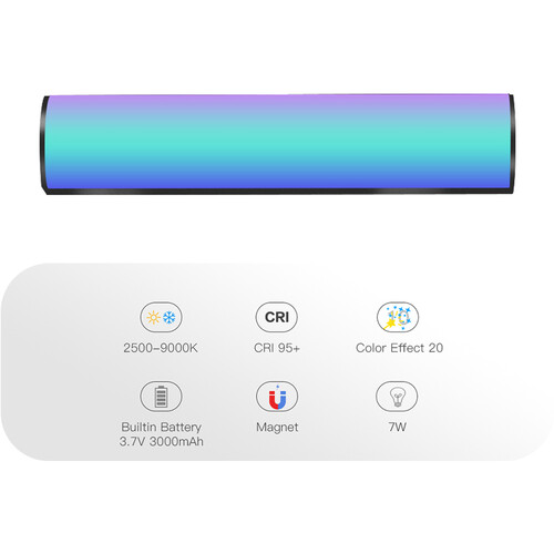 Measuring 7.9″ in length, the W200 Magnetic RGB Tube Light from DigitalFoto provides a convenient way of setting up lighting for various applications. Two magnetic strips on the rear let you easily attach the tube to most metal objects. Additionally, the tube has a 1/4″-20 mounting thread on both ends so that you can mount it on the included mini tripod or other supports.
