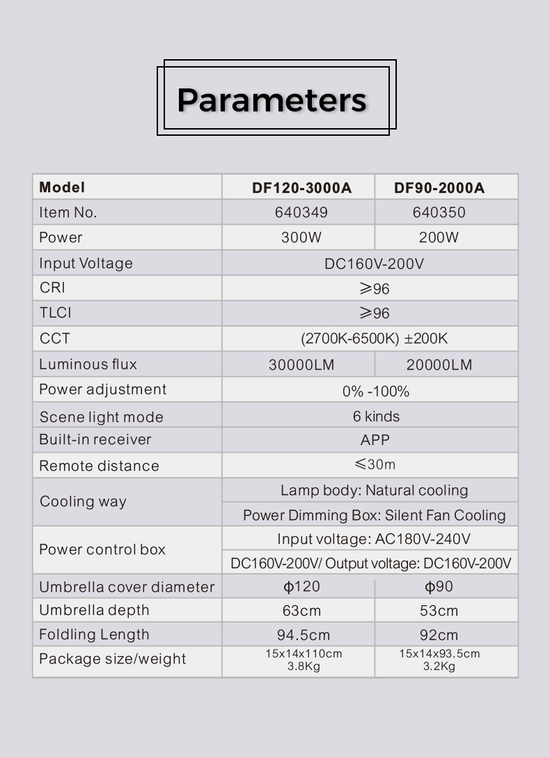 The General DF90 is a powerful 3000W bi-color parabolic umbrella light designed for professional studios and commercial productions. With a compact 90 cm parabolic reflector, it delivers soft yet focused illumination, making it ideal for product photography, portrait work, and video shoots. Built for reliability and long operation hours, the DF90 offers stable brightness, high color accuracy, and fast setup for any workflow.