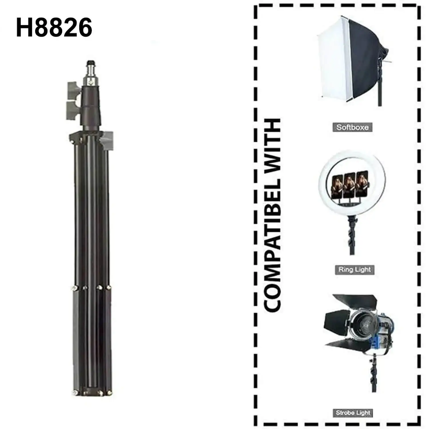 The H-8826 Aluminum Alloy Video Light Stand is a lightweight yet robust support stand designed for lighting equipment used in photography and videography setups. Constructed from aluminum alloy, the stand offers stable height adjustment and reliable load-bearing capacity, making it suitable for both studio and outdoor use. Its adjustable legs and secure locking mechanism let creators position lights, reflectors and accessories at varying elevations with confidence.