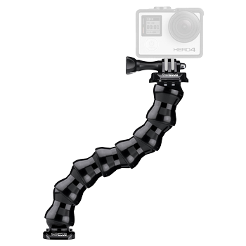 The Gooseneck from GoPro is a flexible mounting arm designed to allow you to capture from a diverse range of camera angles not otherwise possible. It can be combined with any GoPro mount that features a quick release base. These include the Suction Cup, Jaws: Flex Clamp, Curved or Flat Adhesive Mounts, and more. Or you can use it on its own as a handheld camera grip. Multiple Goosenecks can even be joined together for extended length and flexibility. The Gooseneck measures eight inches.