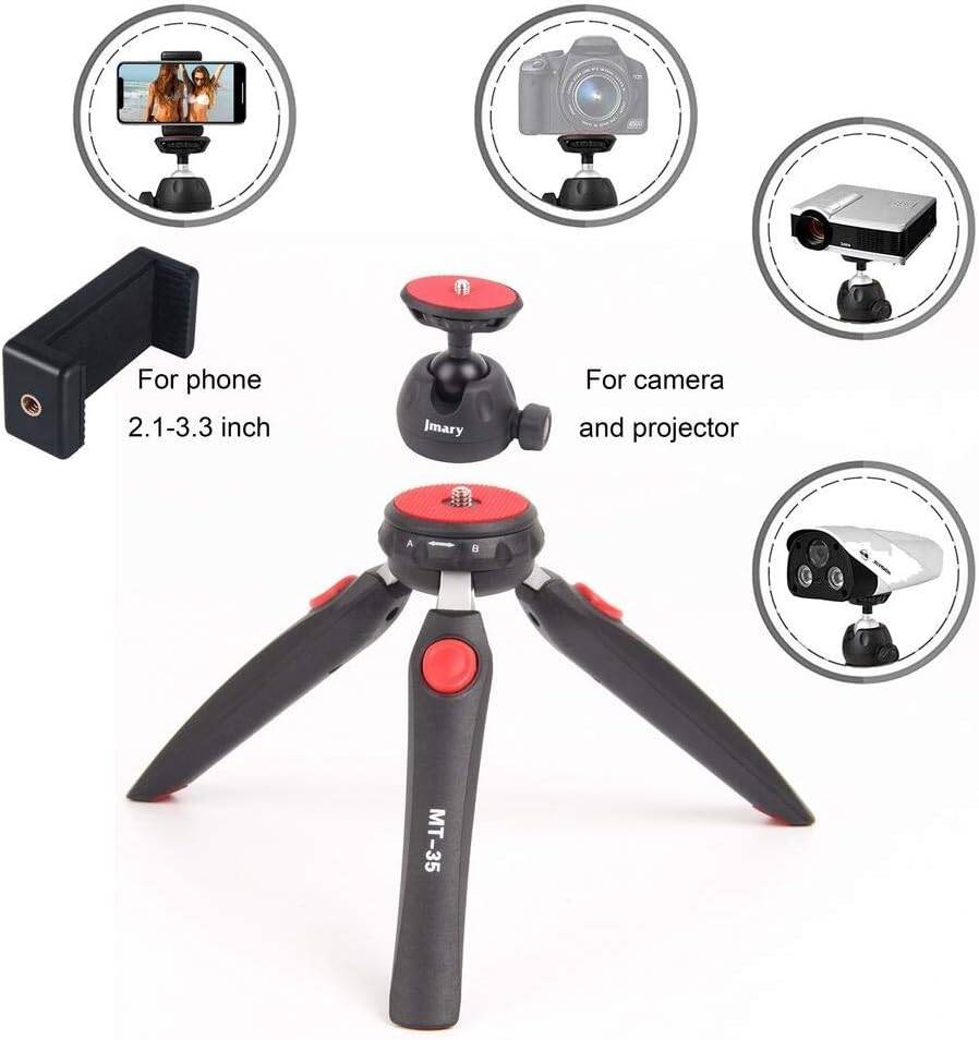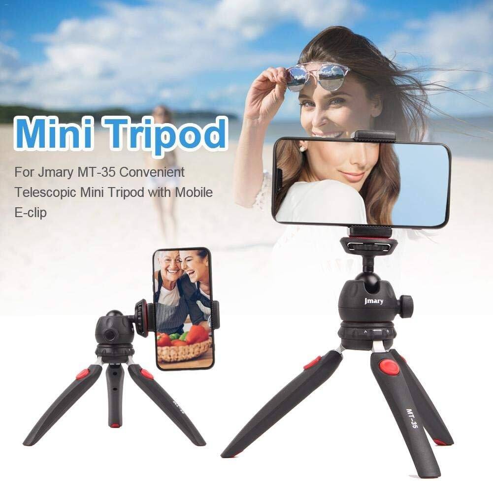Product Description : Jmary MT-35 Foldable , Extendable ,table top Mini DSLR/Digital Camera/Mobile Camera Tripod. High Quality 360 Degree Adjustable aluminium Ball-Head & Extendable Legs.Suitable for DSLR , Digital and Action Cameras, And Mobiles phones. Mobile Holder is included with tripod.it Can take weight of upto 2 kgs. Must have for all DSLR owners. MT-35 desk tripod is novel in shape, lightweight and compact with a reliably sturdy structure. the ball head with 1/4 screw mount. load capacity is 2kg, the material is kept lightweight by combining plastic and aluminum, 2-Section Tripod Legs, applicable to for uneven shooting surfaces, It allows the camera to tilt to 90 degrees to capture images in portrait mode, and supports with ultra-low angle shooting, light and mini, intuitive to use and easy to carry.