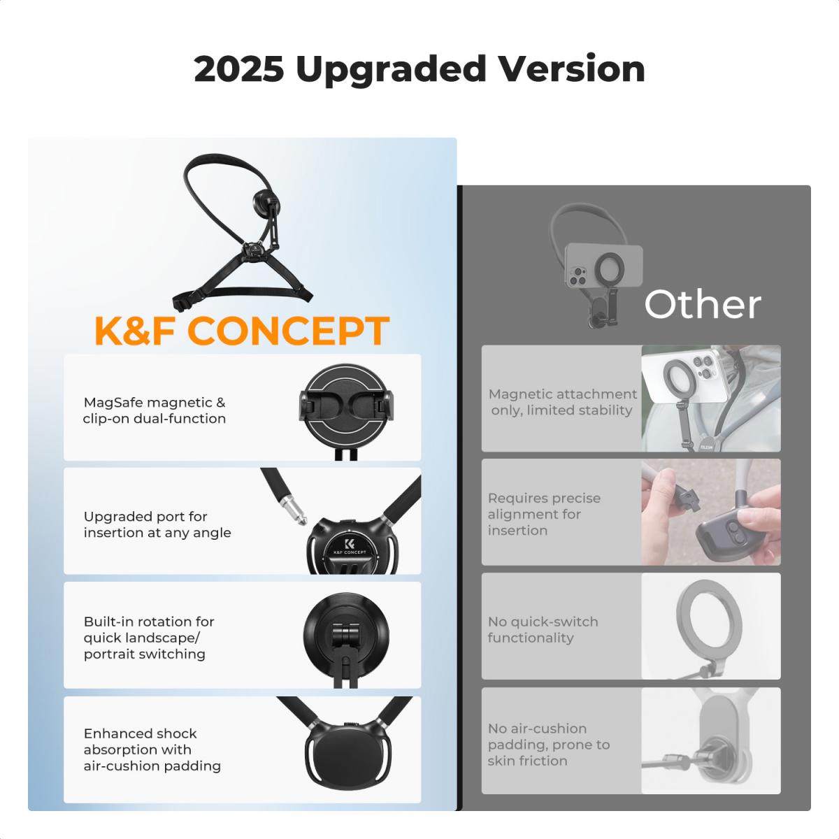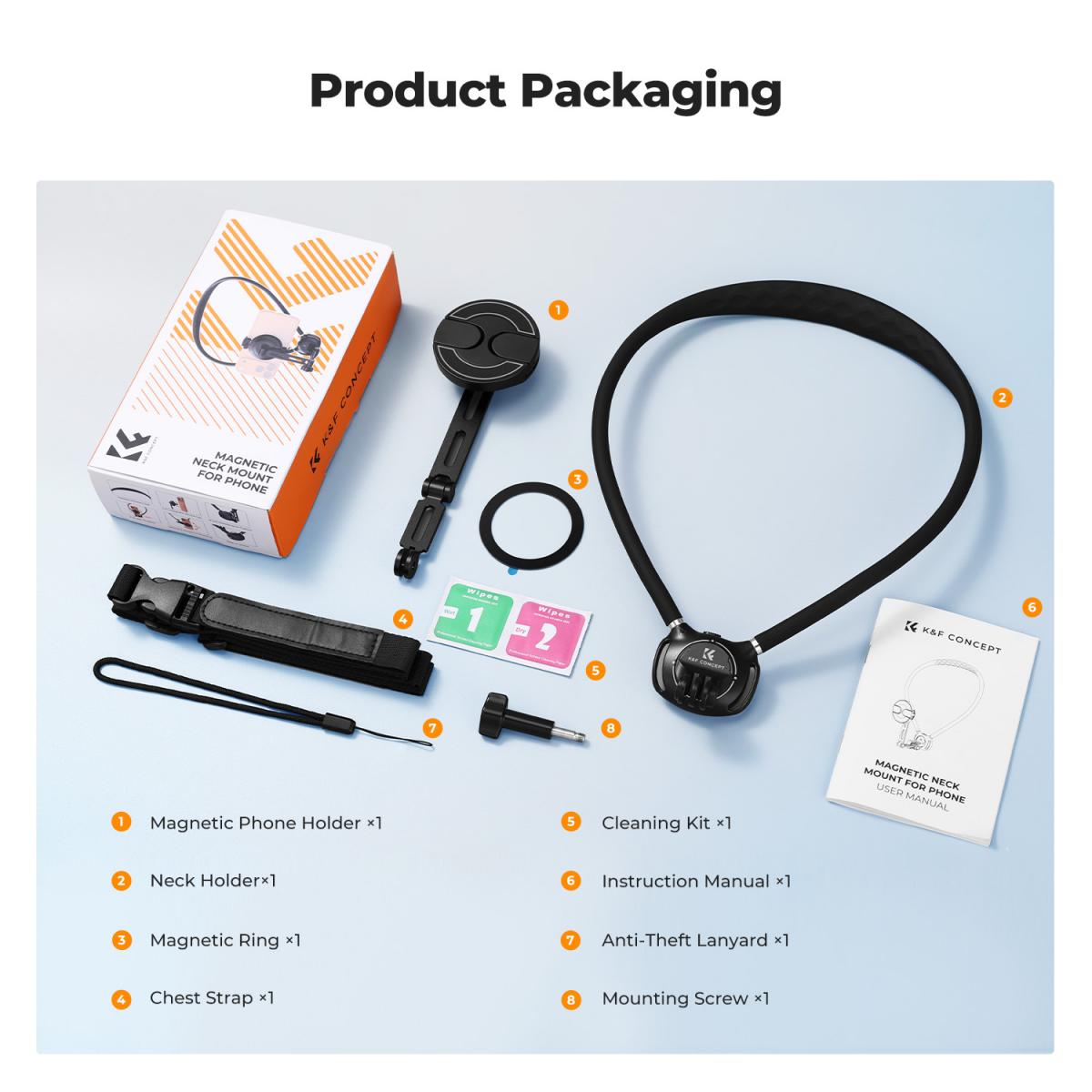 K&F Concept 2-in-1 Magnetic & Clip-on Neck Phone Holder Hands-Free POV (KF15.0016) Overview