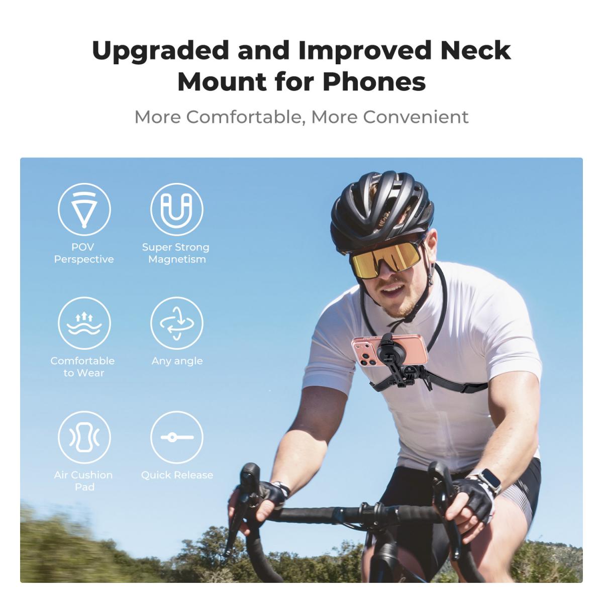 • * Wide Compatibility: The POV phone holder is compatible with a wide range of devices, including 99% of smartphones. It directly attaches to iPhone 17 16 15 14 13 12 series and officially certified MagSafe cases. This neck phone holder also secures with a double claw joint and T-screw. It can be directly connected to some action cameras, such as GoPros. Other action cameras require a separate accessory.