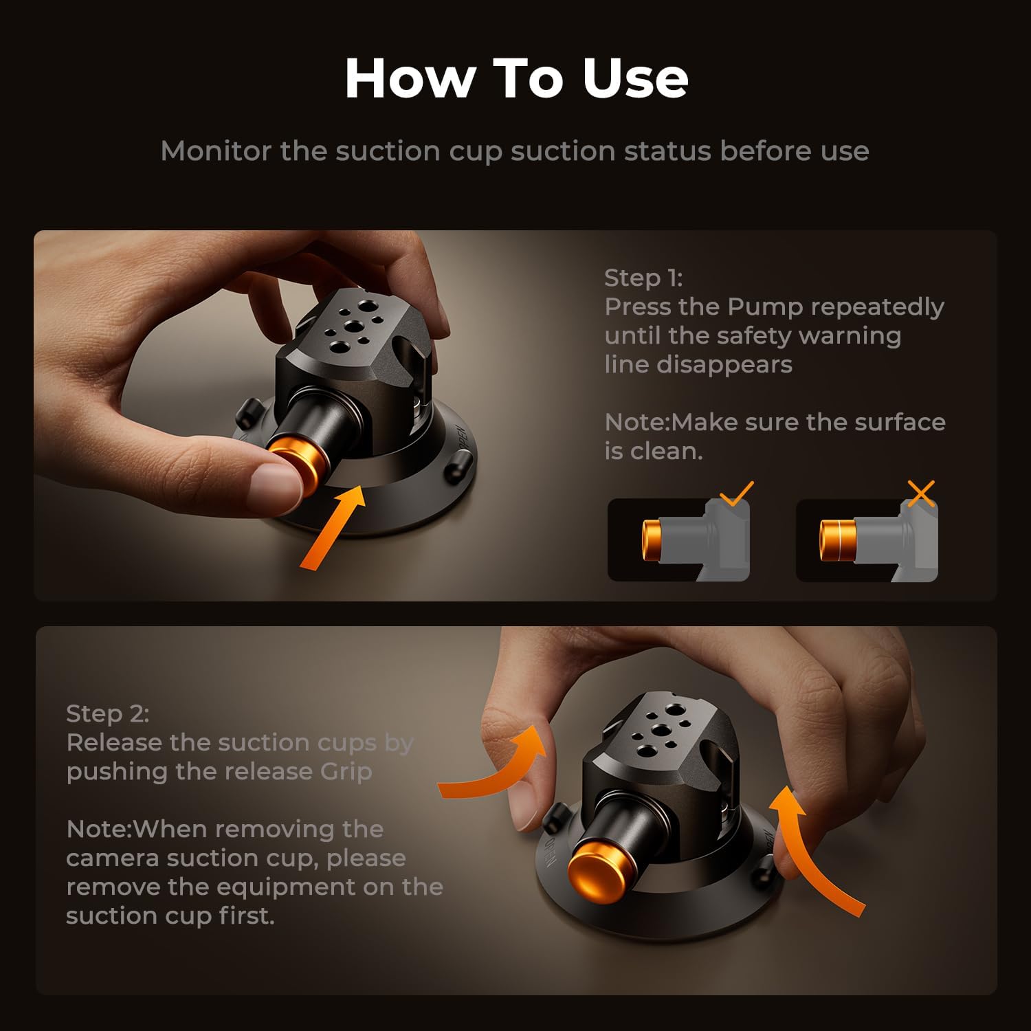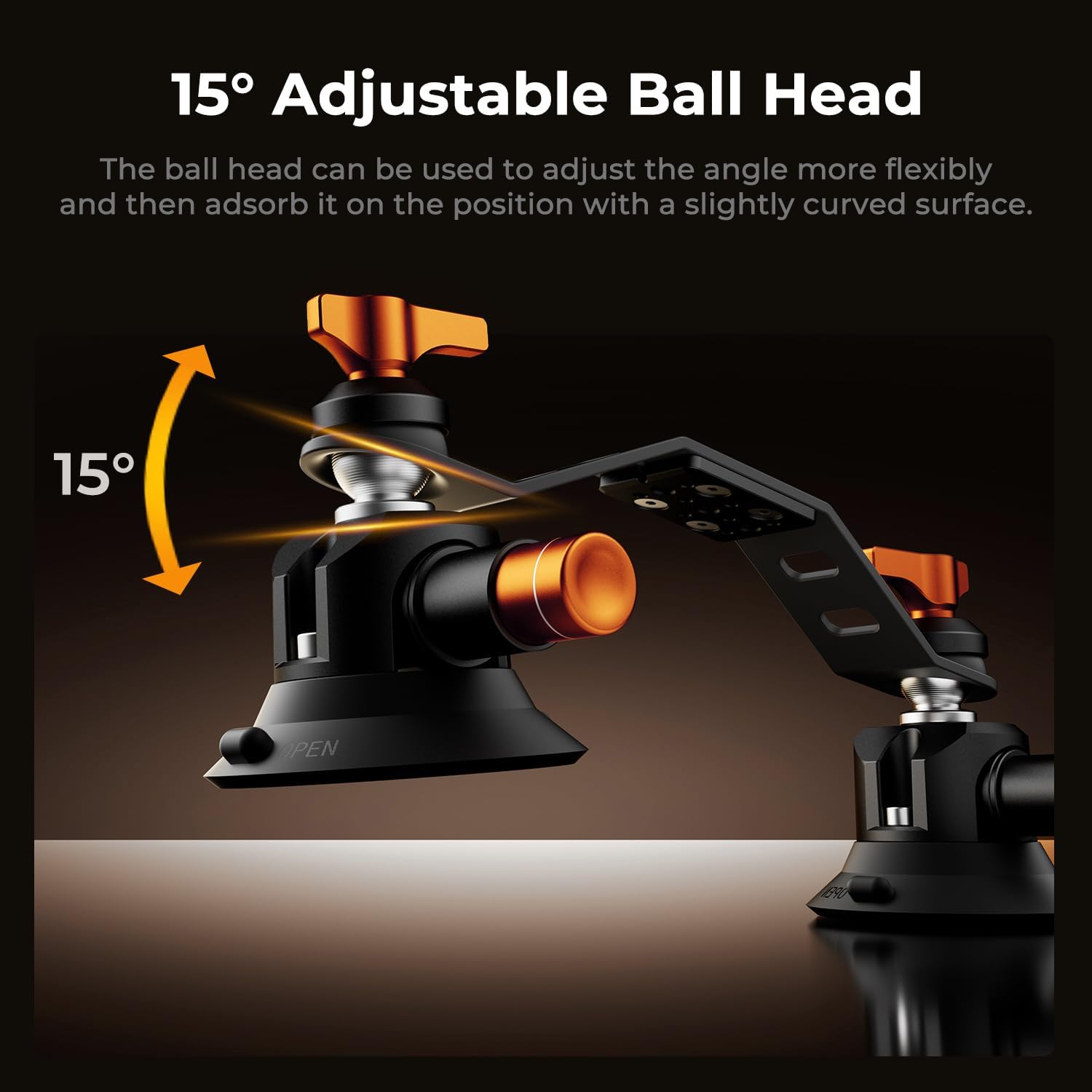 - Secure grip on smooth and curved surfaces with adjustable ball head