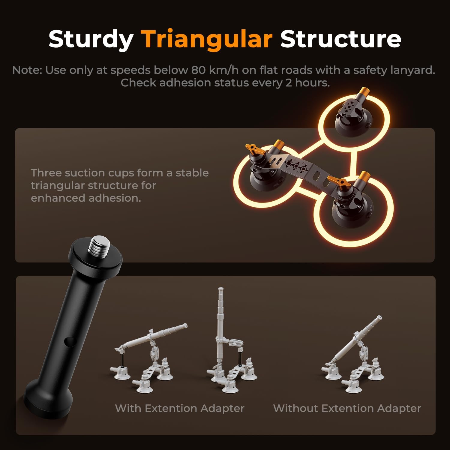 - Triple 3-inch suction cup design for strong and stable mounting