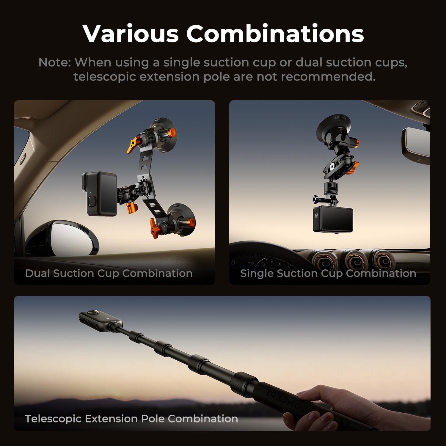 K&F Concept 3-in-1 Car Suction Cup Camera Mount Action Cam – Phone