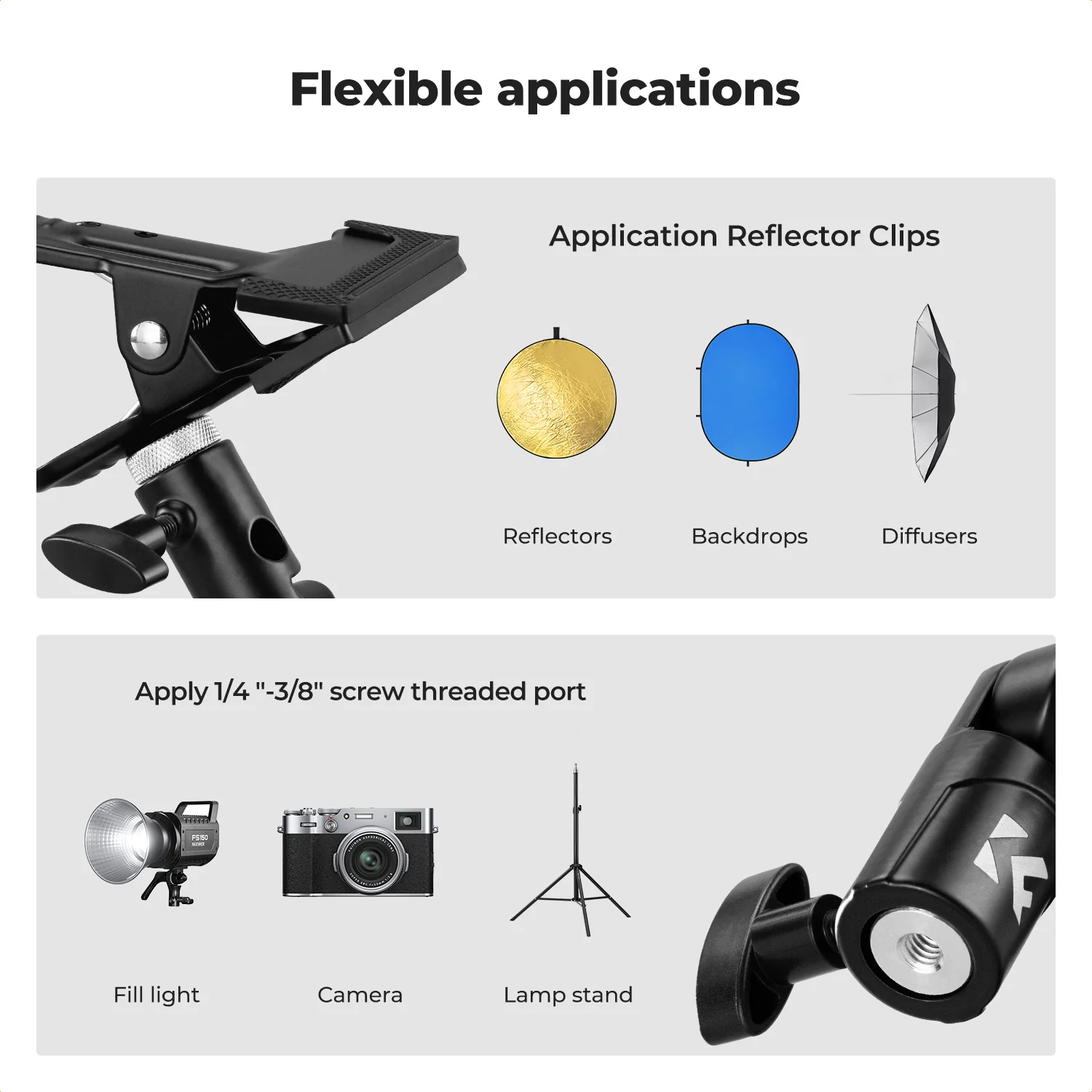 - K&F CONCEPT Photography Reflector Bracket Heavy Duty Metal Clip Bracket