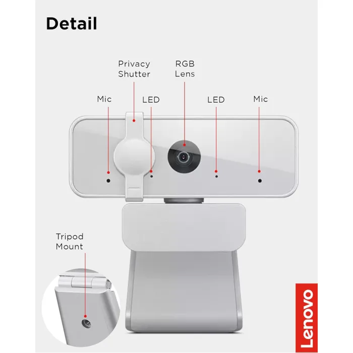 - Lenovo 300 WebCam FHD-1920 x 1080 Privacy shutter- Cloud Grey