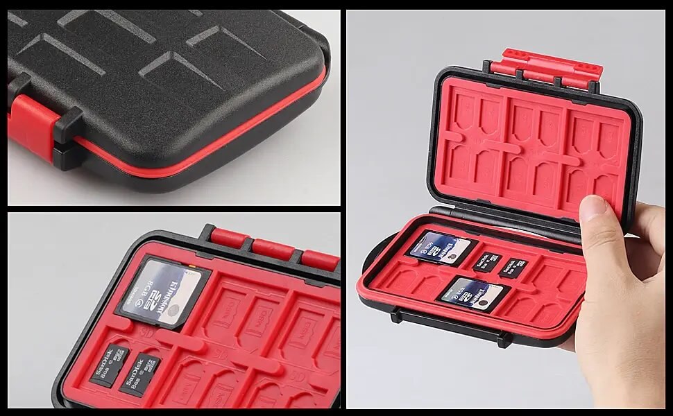 The case is waterproof, dustproof, and shock-resistant, ensuring your memory cards remain safe in diverse environments and situations.