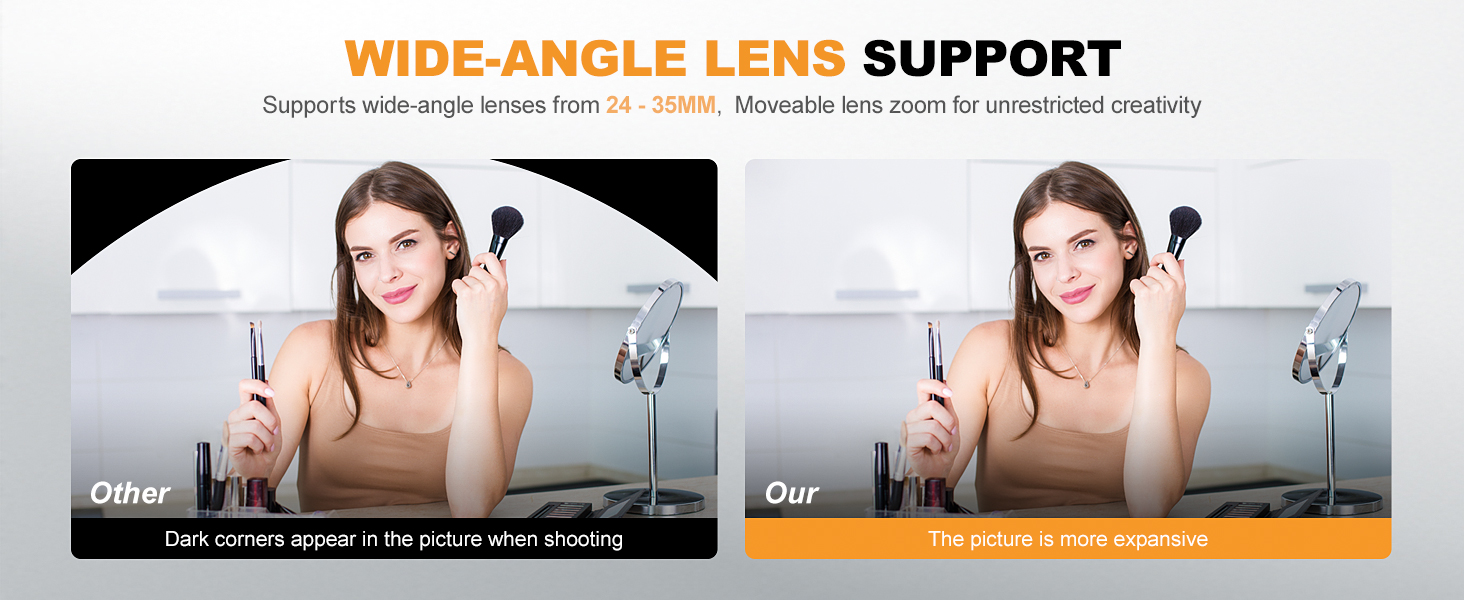 The versatile 8” teleprompter, which can be easily folded down in a single second, comes with eight camera lens adapter rings. It supports vertical or horizontal shooting, and its glass can be fixed at 45° angle. Multiple onboard cold shoes facilitate the mounting of pertinent accessories such as microphones and video lights.