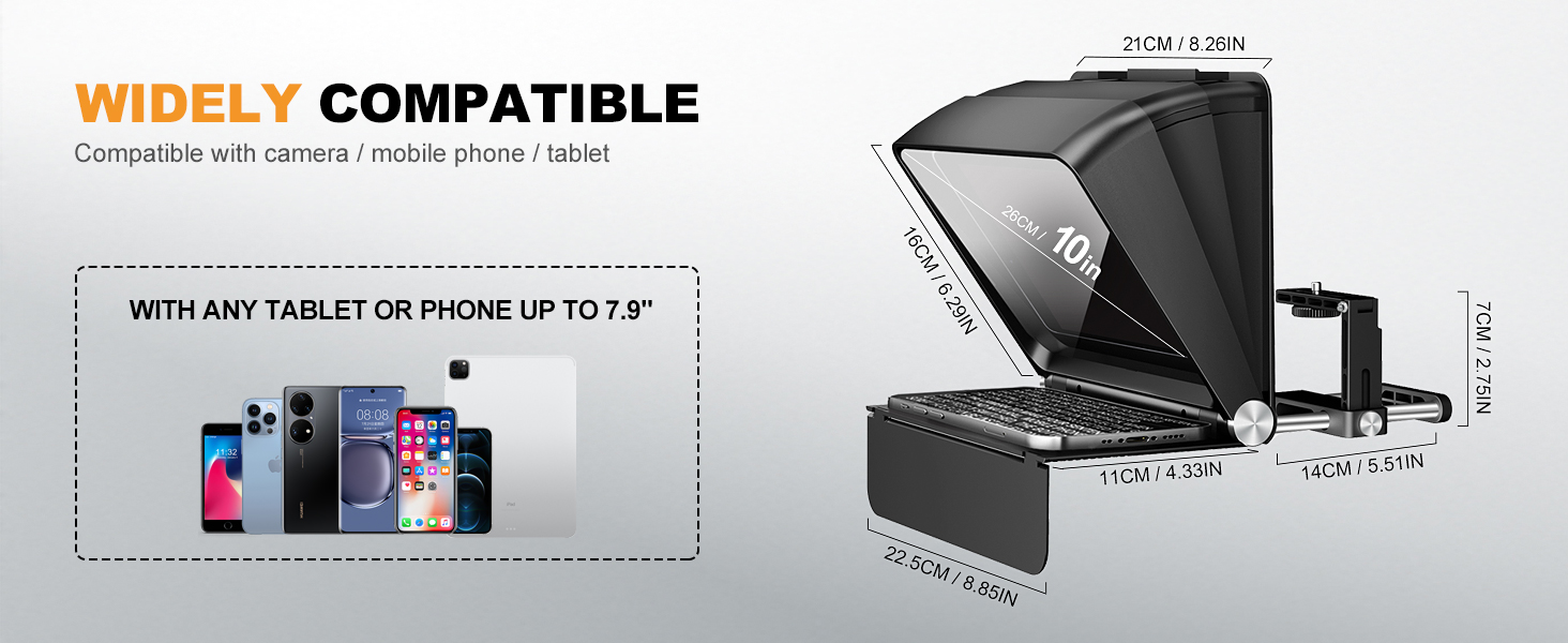 - LENSGO TC7II Portable Teleprompter for Smartphones, Tablets & Select DSLR/Mirrorless Cameras