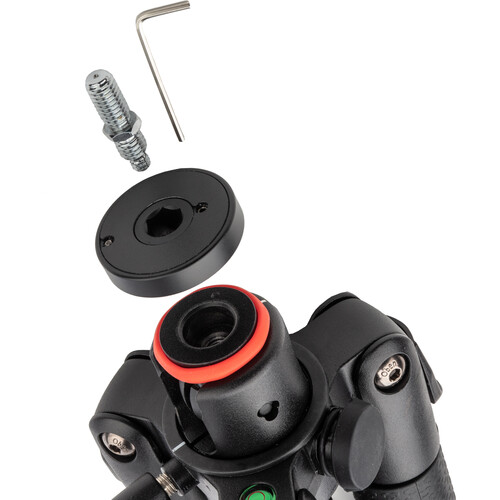 The Magnus TR-13 Travel Tripod with Dual-Action Ball Head includes an Arca-type-compatible quick release plate, and the head has a separate locking knob for the ball, and one for the 360° pan. The cut notch on the side of the ball head allows you to place a camera at a 90° angle, and the head can support point-and-shoot, mirrorless, and DSLR cameras weighing up to 13.2 lb.