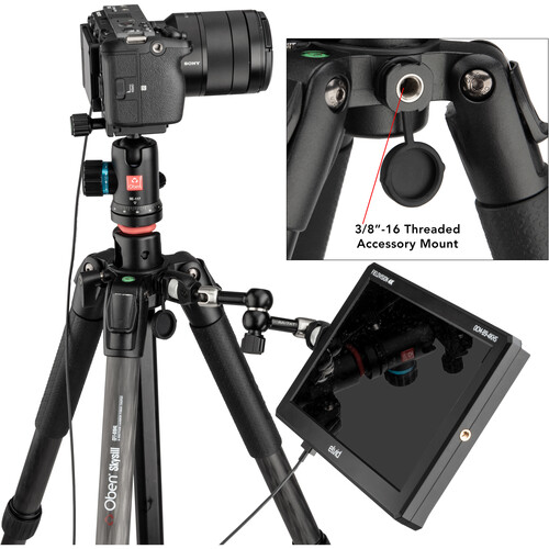 The four-section aluminum legs have flip locks that open so you can extend them along with the rapid center column to a maximum height of 62.5″. To get to the minimum height of 16.5″, the legs splay completely out, and they have three variable angles with independent leg spread to adjust when shooting on uneven terrain. The tripod’s center column is reversible to get closer to the ground. The legs fold in the reverse to a compact 18.2″ to be compact for travel, and rubber feet prevent the tripod from sliding on smooth surfaces.