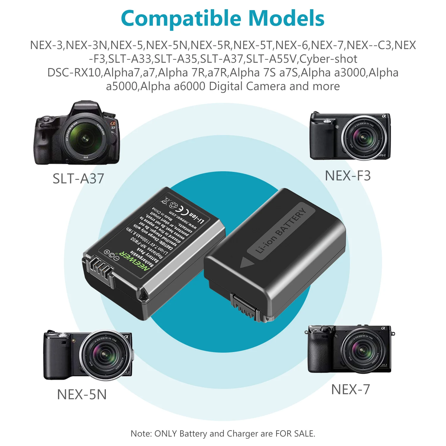 Fully compatible with Sony NP-FW50 cameras (A7, A7R, A6000–A6500, ZV-E10, RX10 series)