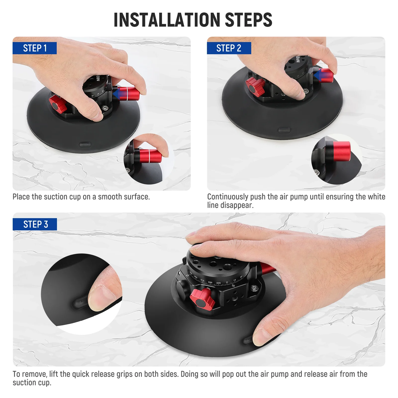 - Excellent Load Capacity– The suction cup mount can support devices up to 11 lbs (5 kg) in dynamic environments (on smooth, non bumpy roads at speeds not exceeding 80 km/h). For static use, it holds up to 132 lbs (60 kg) horizontally and 110 lbs (50 kg) vertically, making it an ideal choice for road trip POV video recordings