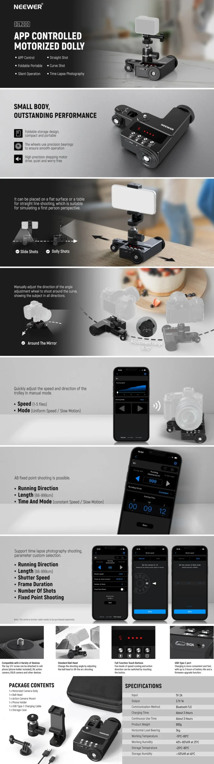 App control (iOS/Android) with Manual, Video & Time Lapse modes