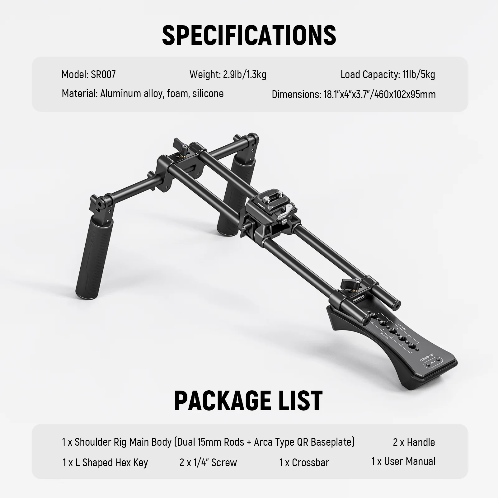 Modular 15mm rod system, 60mm rail gauge, compatible with NEEWER & SmallRig accessories