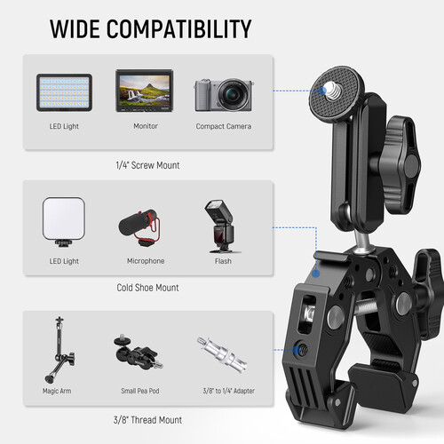 - Neewer ST83 Super Clamp with Dual Ball Head Magic Arm
