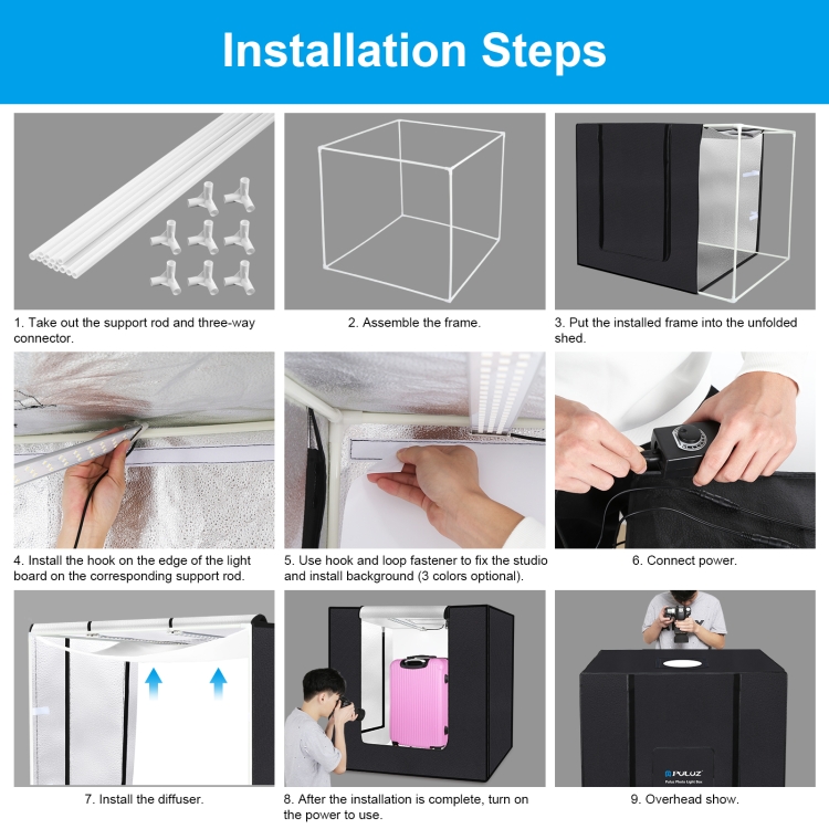 PULUZ 80Cm lightbox Photo Studio Box softbox 80W White Light Photo Lighting Studio Shooting Tent Box Kits And Photography Backdrop